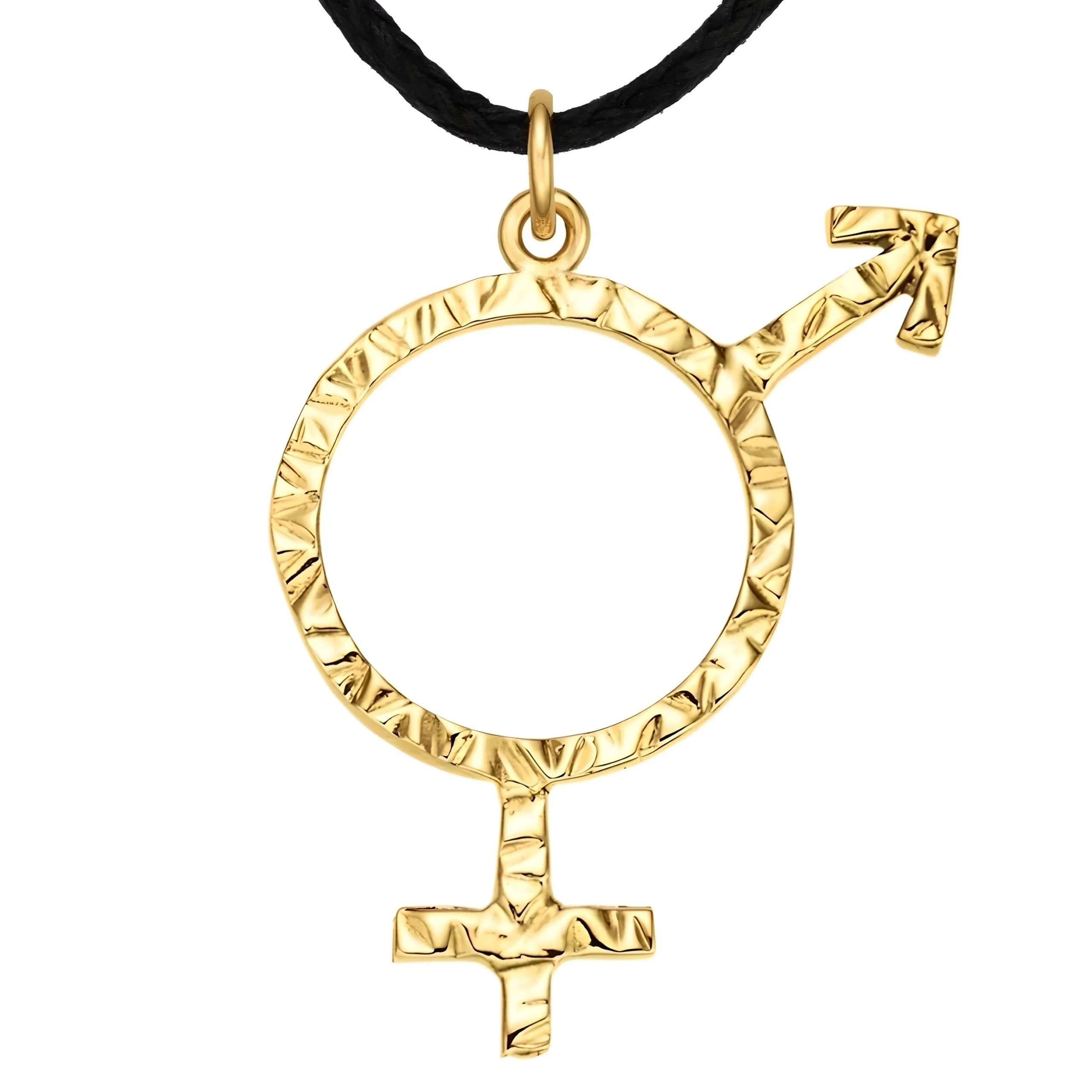 -) Striking LGBTQ+ Bigender 925 STERLING SILVER pendant – 1.2 x 1.2 inch / 23×23 mm (+0.26 inch ring / +5 mm ring), 2.1g / 0.074 oz GOLD PLATED STERLING SILVER. LARGE-SIZED pendant, ideal as an eye-catcher. Also available as a smaller pendant with spring ring clasp.