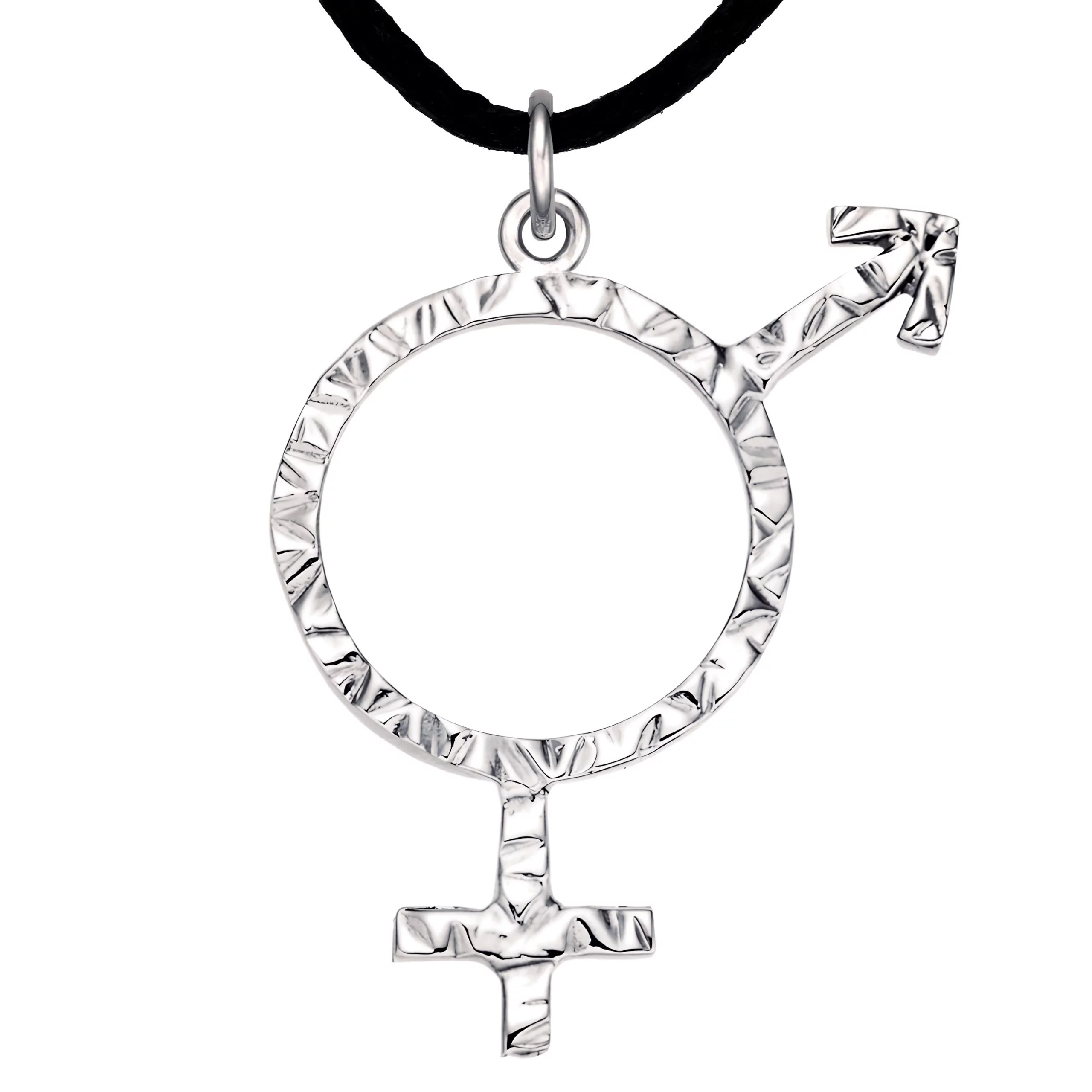 -) Striking LGBTQ+ Bigender 925 STERLING SILVER pendant – 1.2 x 1.2 inch / 23×23 mm (+0.26 inch ring / +5 mm ring), 2.1g / 0.074 oz PLATINUM PLATED STERLING SILVER. LARGE-SIZED pendant, ideal as an eye-catcher. Also available as a smaller pendant with spring ring clasp.