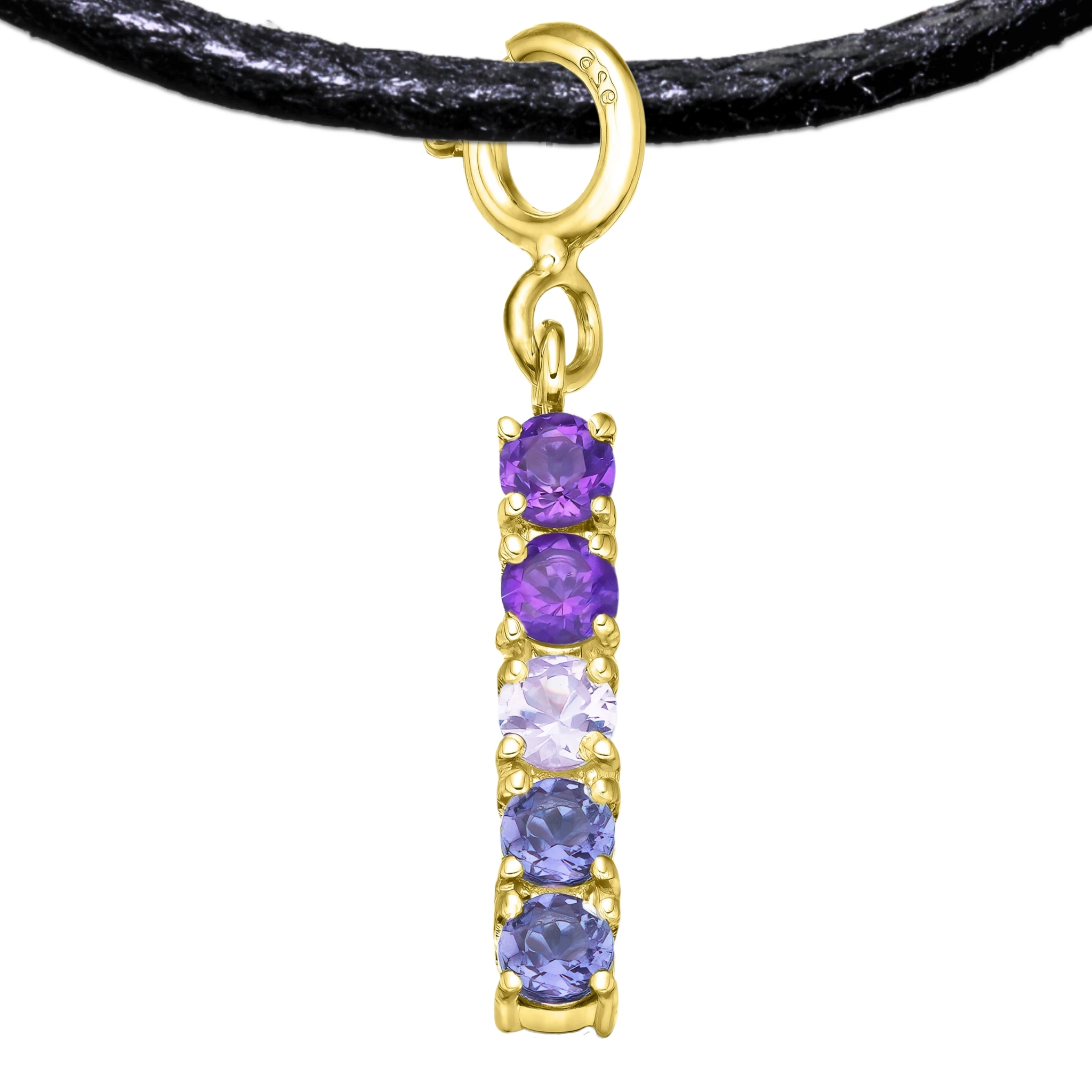 -) Subtle yet expressive LGBTQ+ 925 STERLING SILVER flag pendant – 0.12 x 0.53 in / 3 x 13,5 mm (+0.35 in bail with spring ring clasp), Gold-plated with 2x amethyst, 1x sapphire, 2x iolite (Smaller version available)