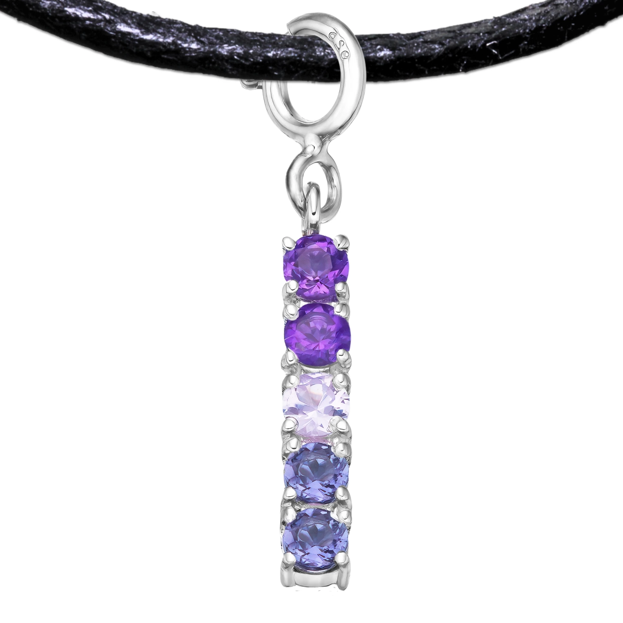 -) Subtle yet expressive LGBTQ+ 925 STERLING SILVER flag pendant – 0.12 x 0.53 in / 3 x 13,5 mm (+0.35 in bail with spring ring clasp), Platinum-plated with 2x amethyst, 1x sapphire, 2x iolite (Smaller version available)