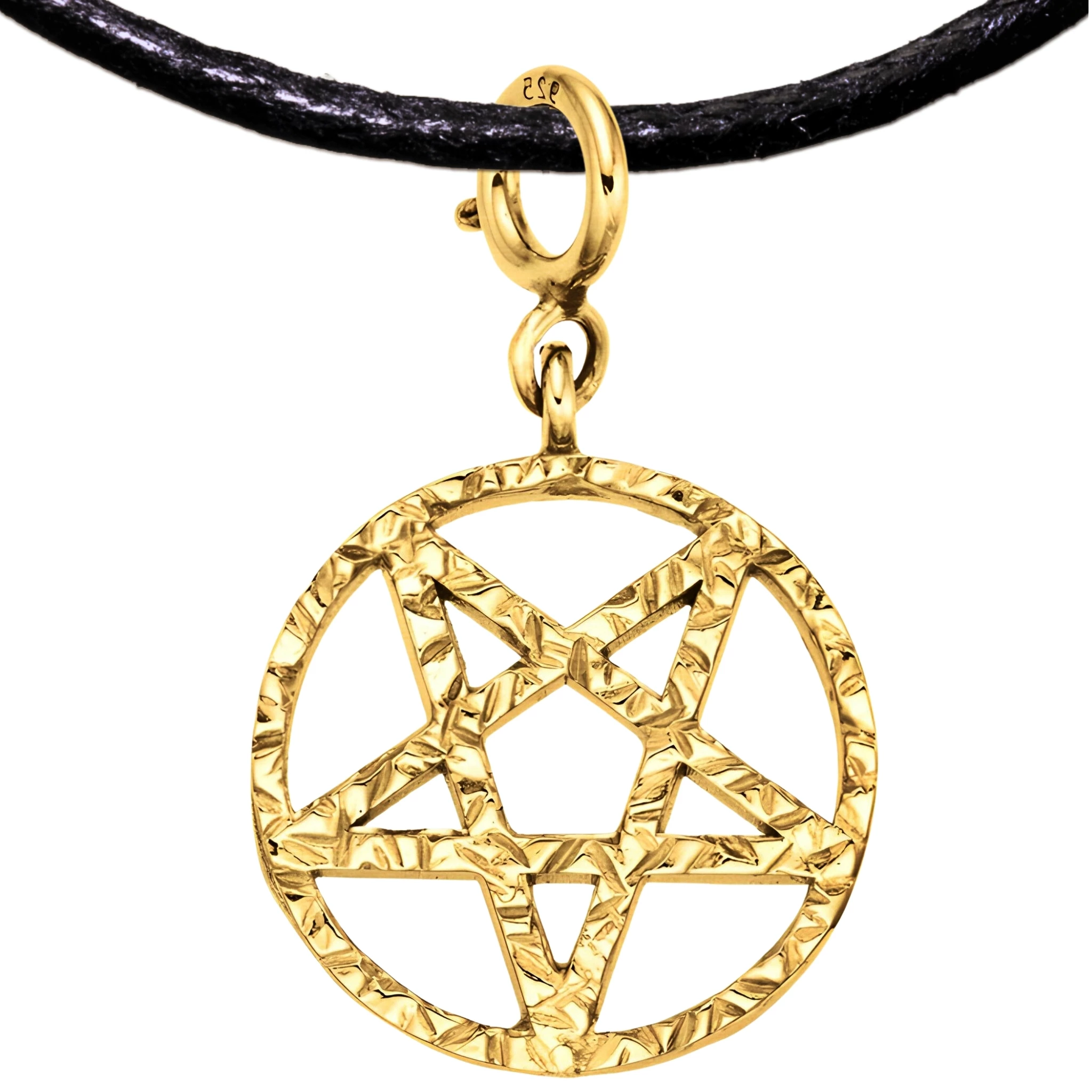 -) Delicate expressive 925 STERLING SILVER inverted pentagram symbol pendant – 0.5×0.5 in / 13 x 13 mm (+0.35 in jump ring with spring clasp), 0.8g / 0.028 oz gold-plated sterling silver. Small pendant, can be worn alone or attached to existing jewelry. For the larger version, please select the ring loop option.