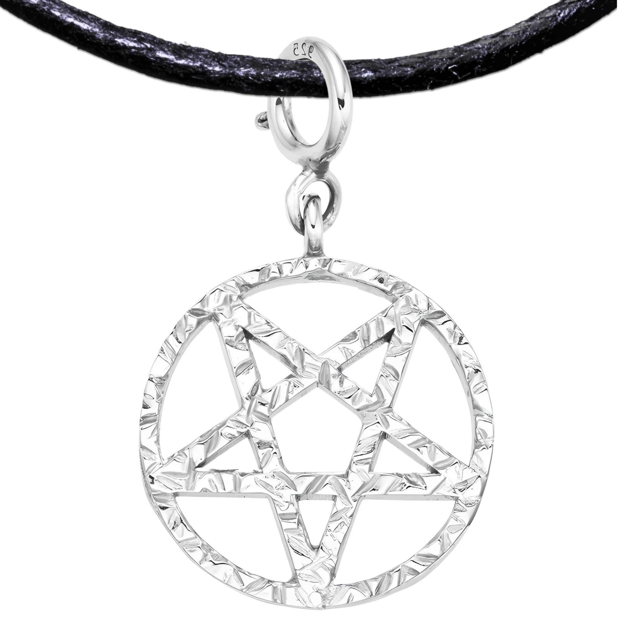 -) Delicate expressive 925 STERLING SILVER inverted pentagram symbol pendant – 0.5×0.5 in / 13 x 13 mm (+0.35 in jump ring with spring clasp), 0.8g / 0.028 oz platinum-plated sterling silver. Small pendant, can be worn alone or attached to existing jewelry. For the larger version, please select the ring loop option.
