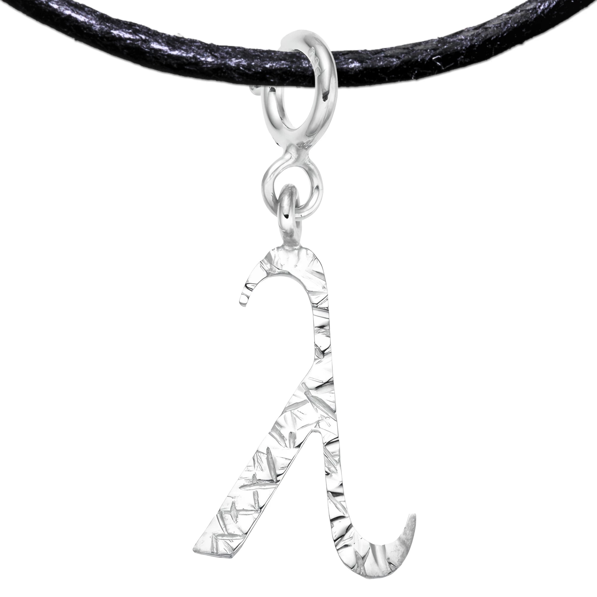 -) Delicate expressive 925 STERLING SILVER Lambda symbol pendant – 0.3×0.5 in / 8 x 13 mm (+0.35 in jump ring with spring clasp), 0.45g / 0.016 oz platinum-plated sterling silver. Small pendant, can be worn alone or attached to existing jewelry. For the larger version, please select the ring loop option.