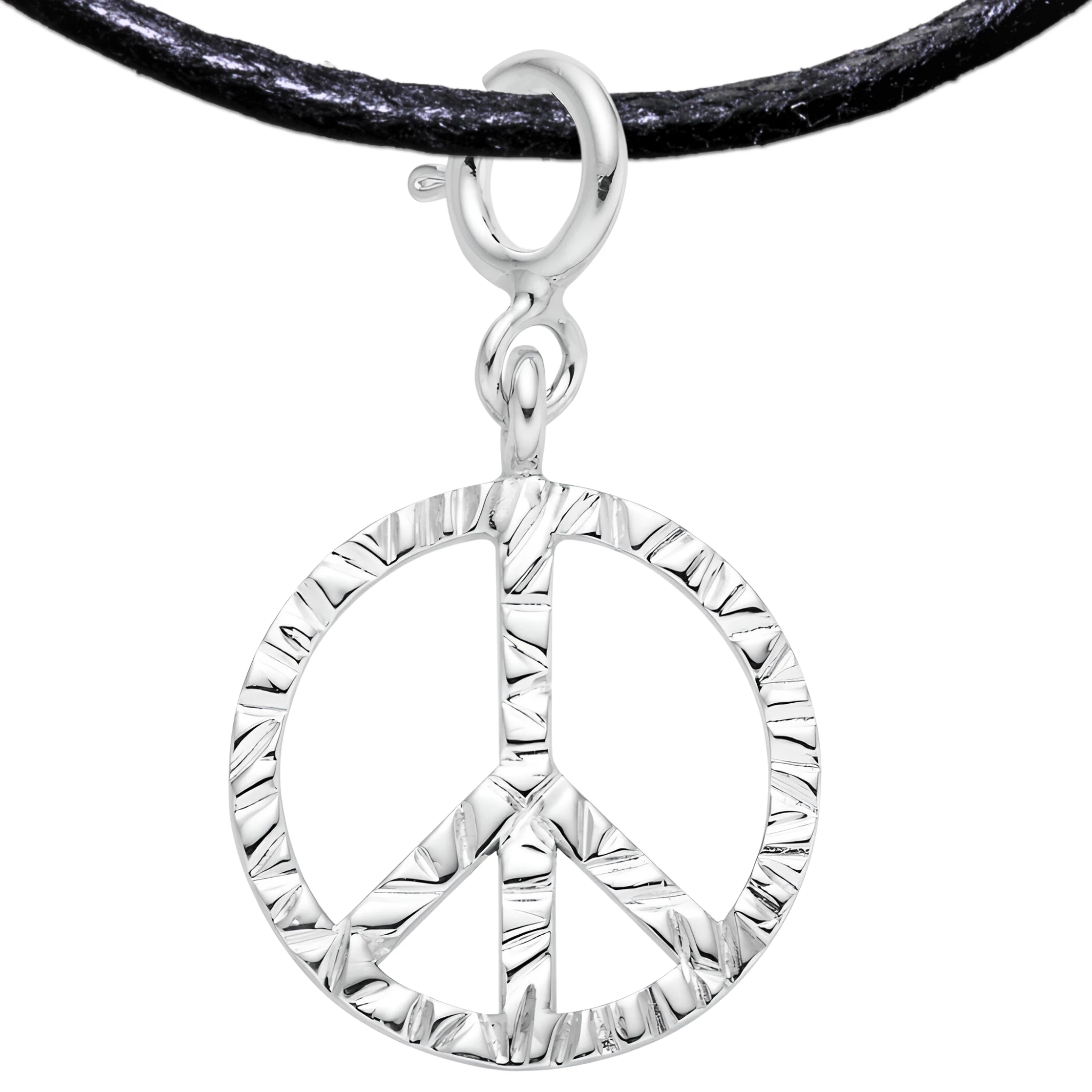 Peace 925 Sterling Silver Charm Necklace with Spring Clasp – Small (Platinum Plated)