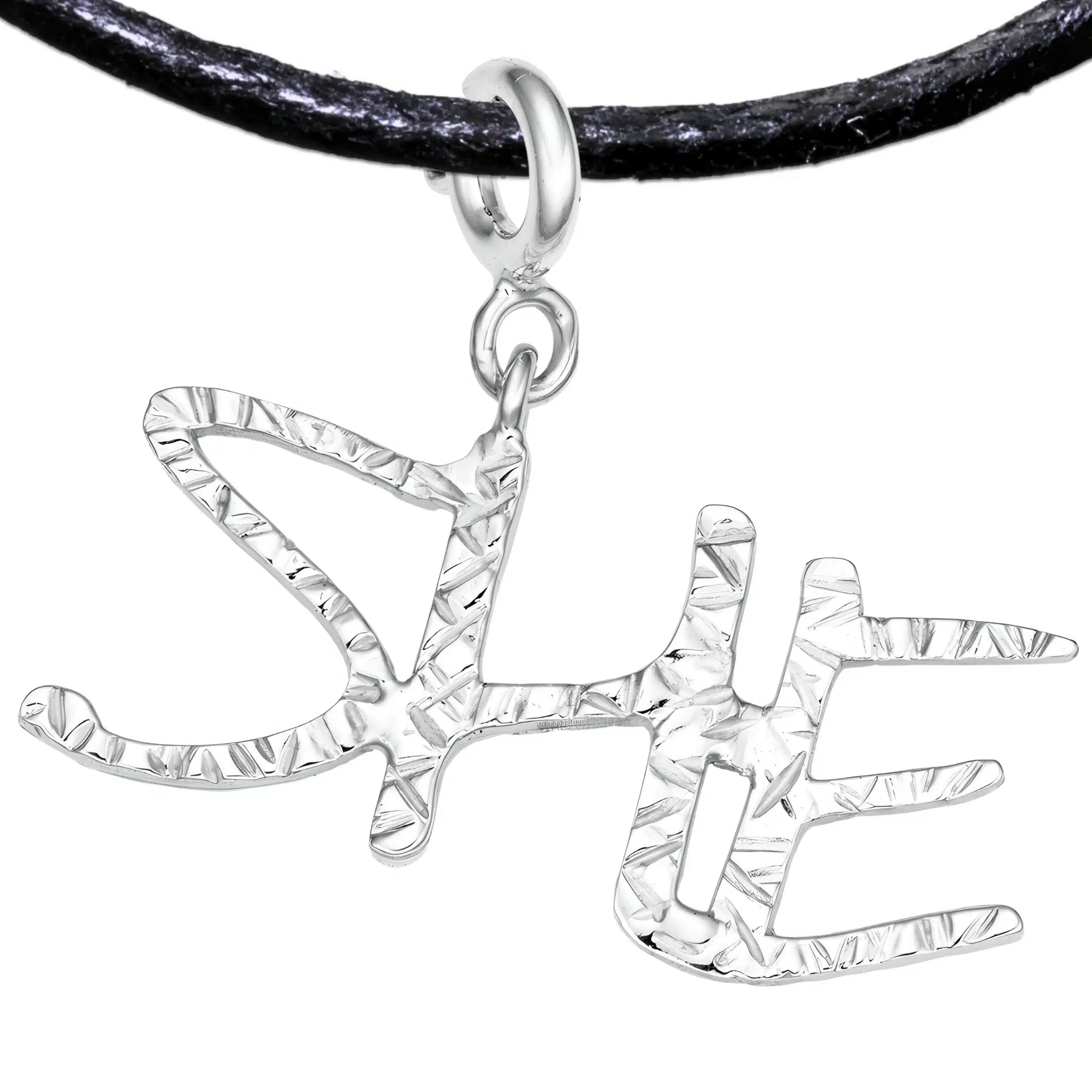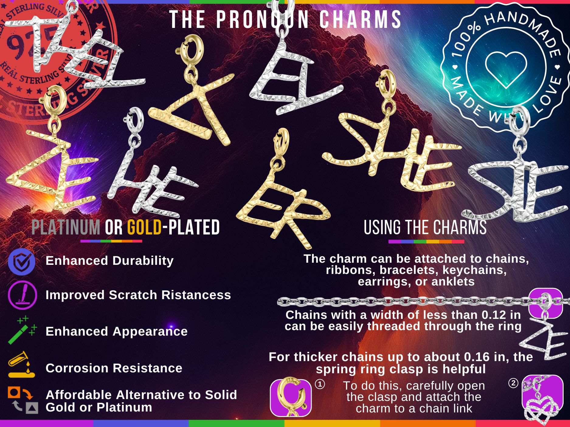 SHE Pronoun 925 Sterling Silver Charm Necklace with Spring Clasp (Platinum Plated)