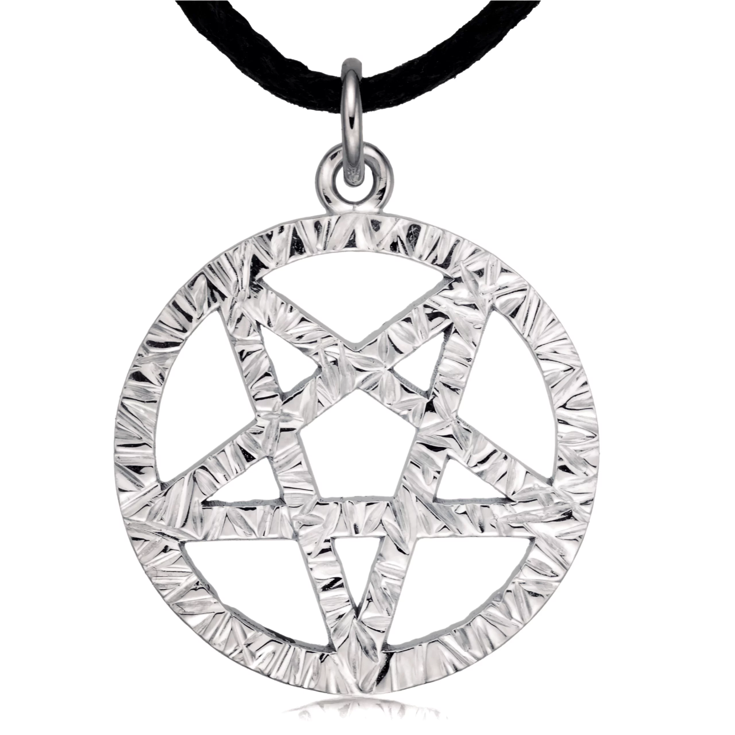 -) Striking 925 STERLING SILVER Inverted Pentagram Symbol Pendant – 0.82 x 0.82 in (+0.26 in jump ring), 1/14 oz platinum-plated sterling silver. Medium-sized pendant, ideal as an eye-catcher. Also available as a smaller pendant with spring ring clasp.