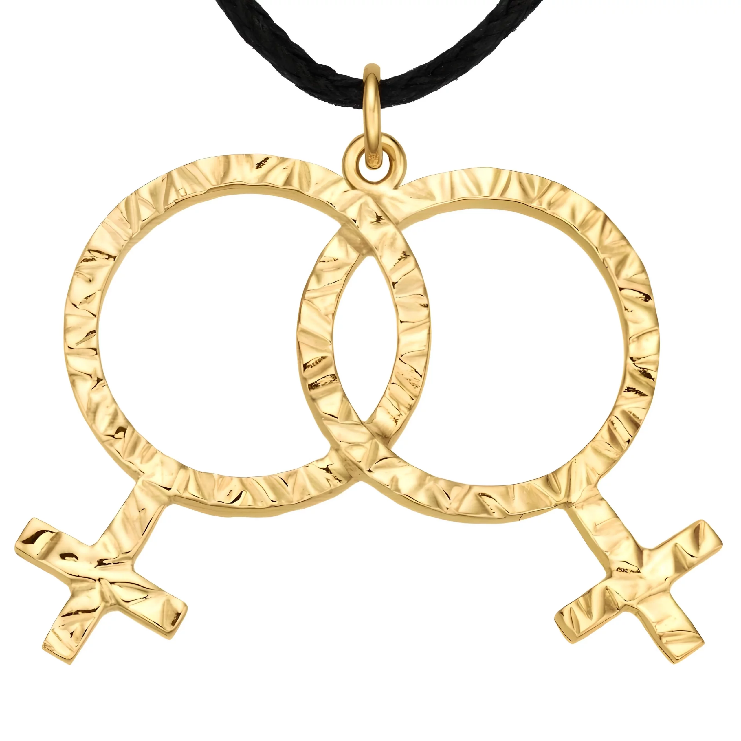 -) Striking LGBTQ+ Lesbian 925 STERLING SILVER pendant – 1.34 x 1 inch / 34×26 mm (+0.26 inch ring / +5 mm ring), 3.2g / 0.113 oz GOLD PLATED STERLING SILVER. LARGE-SIZED pendant, ideal as an eye-catcher. Also available as a smaller pendant with spring ring clasp.