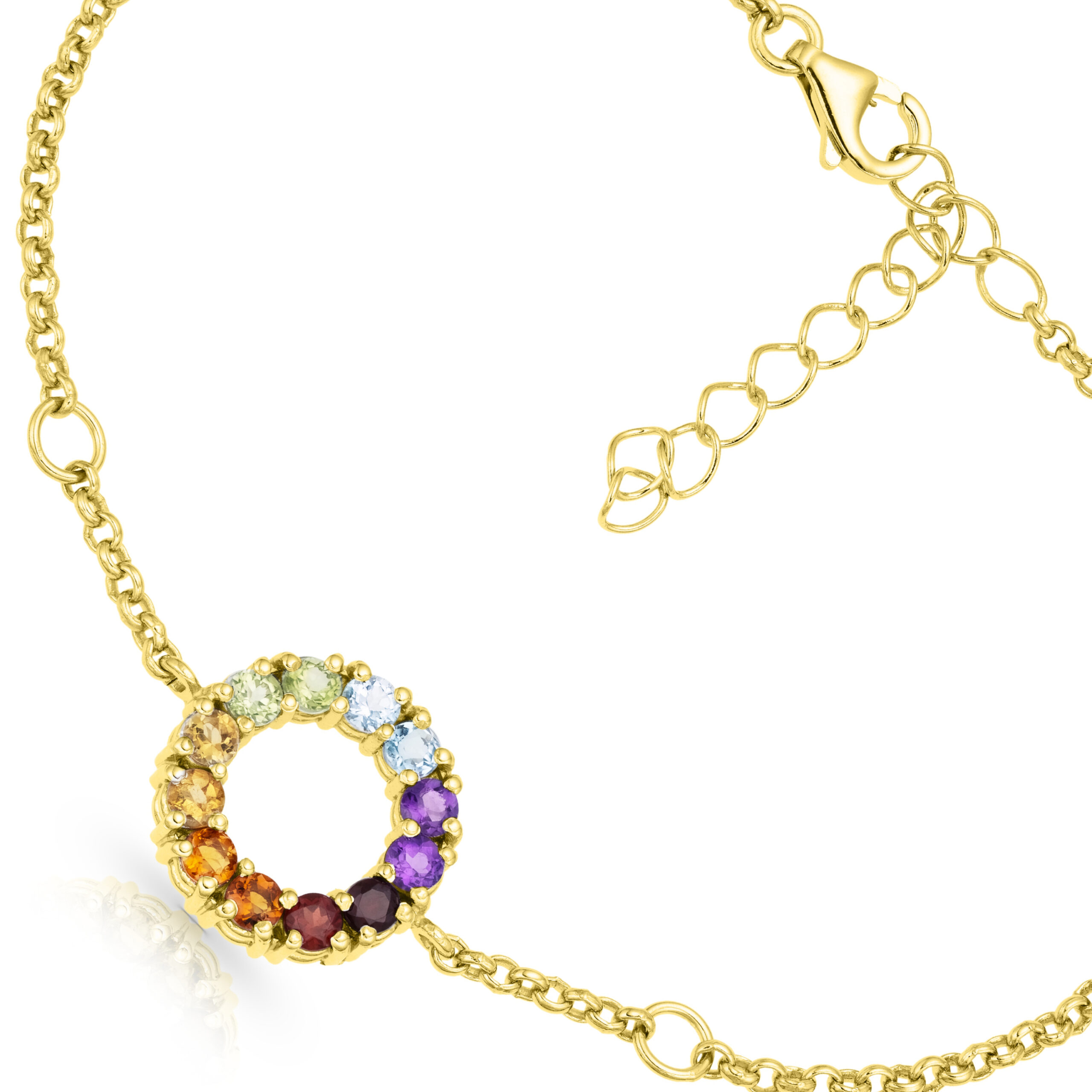 -) High-Quality Materials – The gemstones used are garnet red, citrine orange, citrine yellow, peridot green, topaz blue, and amethyst purple. The bracelet weighs approximately 0.1 oz (3 g) with the smaller chain and 0.18 oz (5 g) with the larger chain.