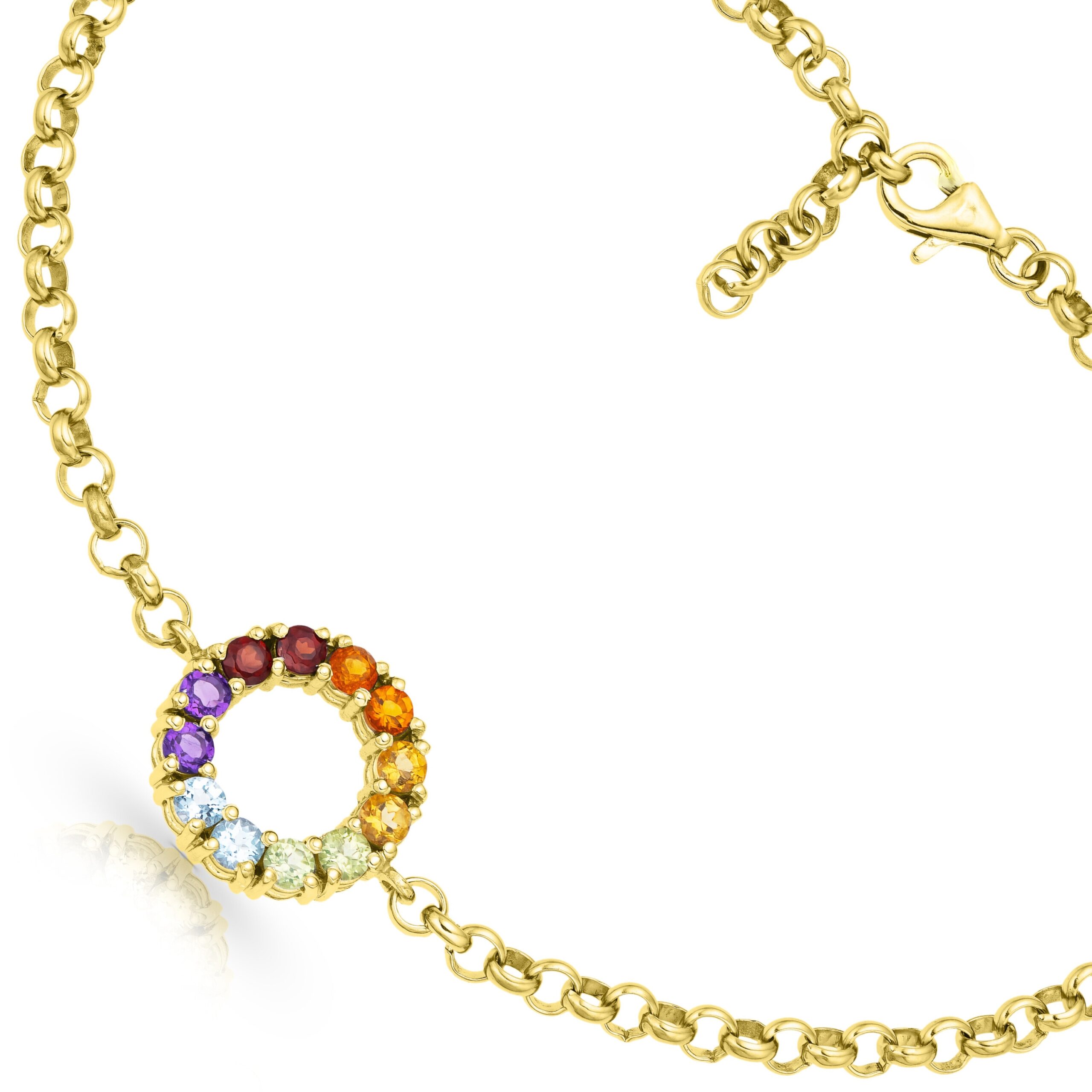 -) High-Quality Materials – The gemstones used are garnet red, citrine orange, citrine yellow, peridot green, topaz blue, and amethyst purple. The bracelet weighs approximately 0.1 oz (3 g) with the smaller chain and 0.18 oz (5 g) with the larger chain.