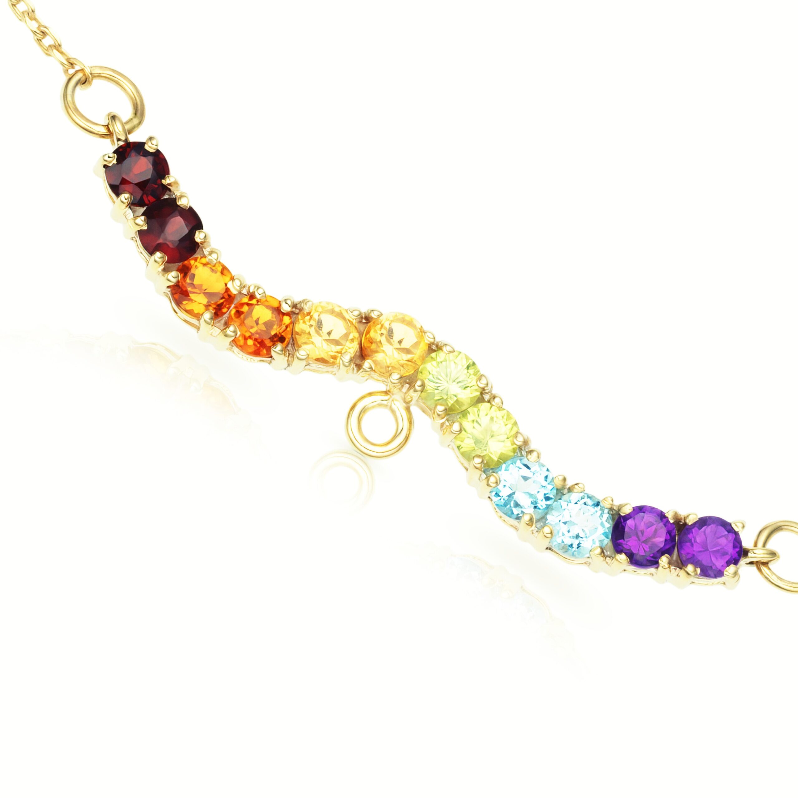 -) High-Quality Gemstones – Featuring 12 rainbow gemstones, each approximately 1/8 inch in diameter, including garnet red, citrine orange, citrine yellow, peridot green, topaz blue, and amethyst purple, this necklace combines vibrant color with timeless elegance.