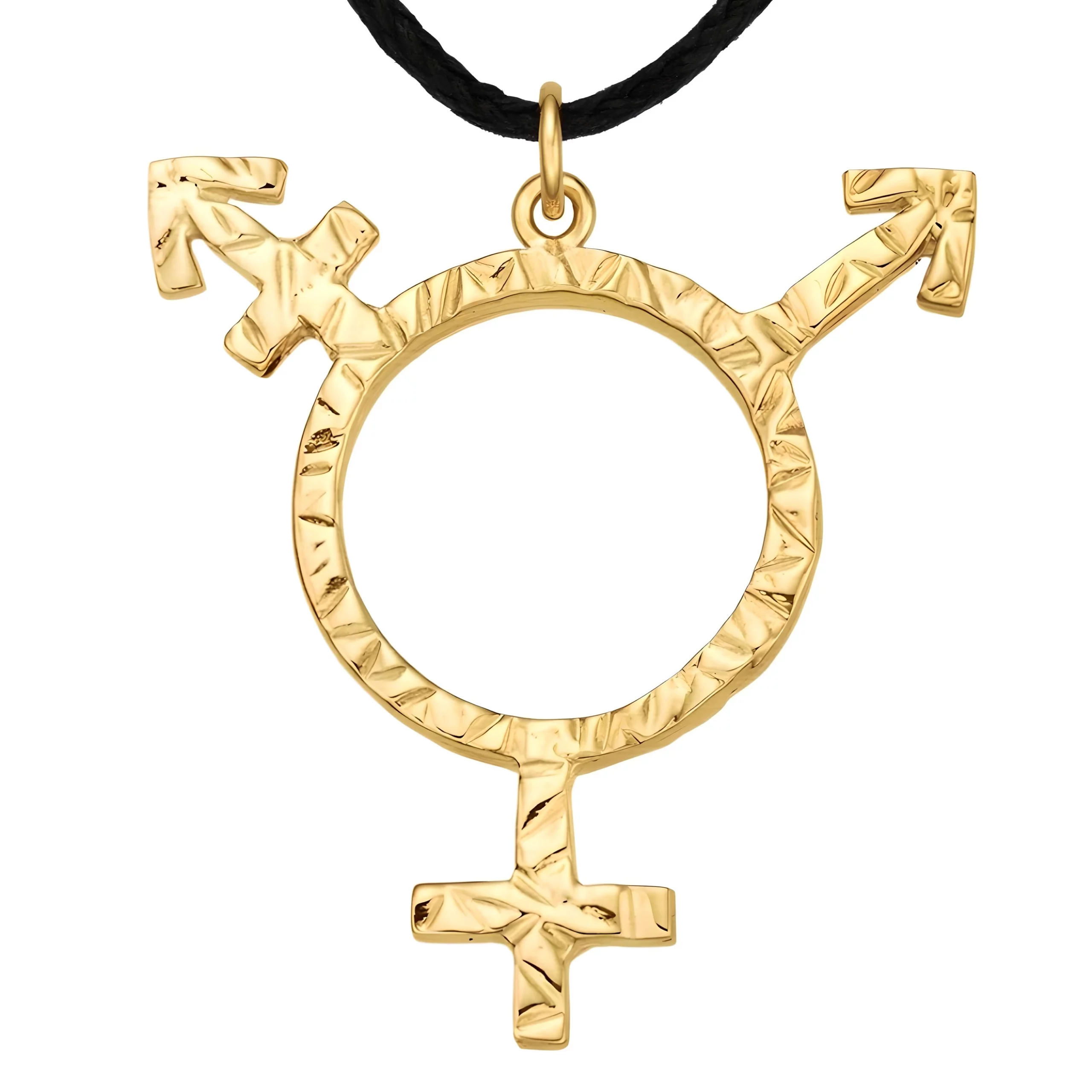 -) Striking LGBTQ+ Transgender 925 STERLING SILVER pendant – 1.5 x 1.26 inch / 38×32 mm (+0.26 inch ring / +5 mm ring), 3g / 0.106 oz GOLD PLATED STERLING SILVER. LARGE-SIZED pendant, ideal as an eye-catcher. Also available as a smaller pendant with spring ring clasp.