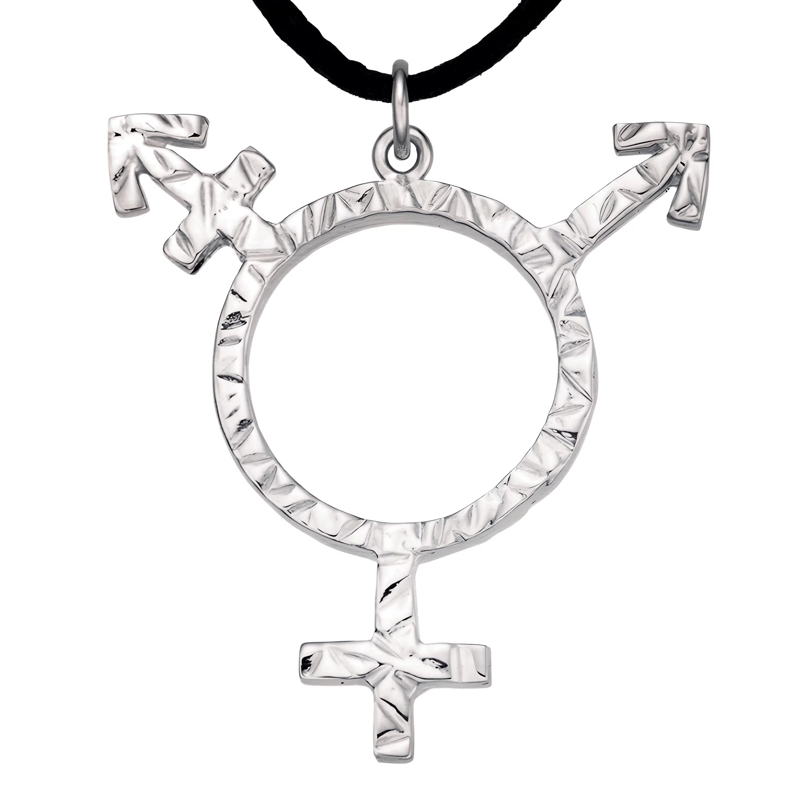 -) Striking LGBTQ+ Transgender 925 STERLING SILVER pendant – 1.5 x 1.26 inch / 38×32 mm(+0.26 inch ring / +5 mm ring), 3g / 0.106 oz PLATINUM PLATED STERLING SILVER. LARGE-SIZED pendant, ideal as an eye-catcher. Also available as a smaller pendant with spring ring clasp.